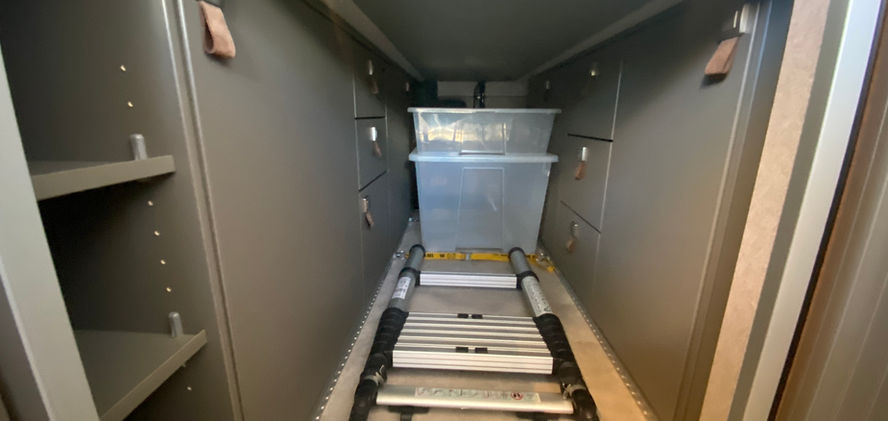Hij heeft bovendien heel veel opbergruimte en een grote koelkast met vriesvakje. Aan alles is gedacht.